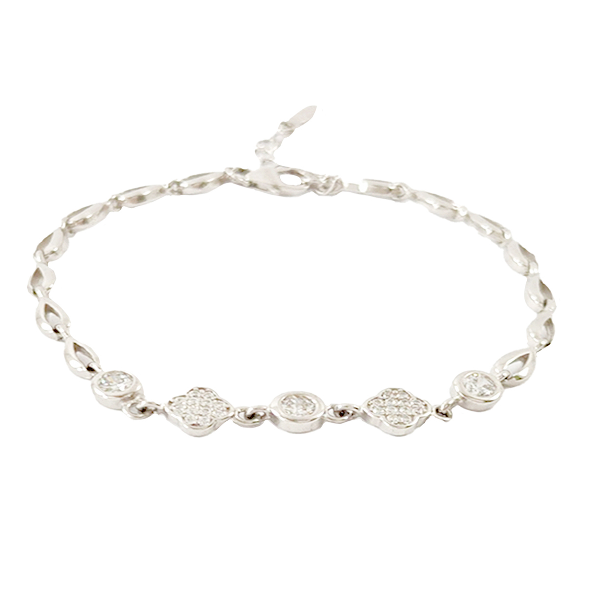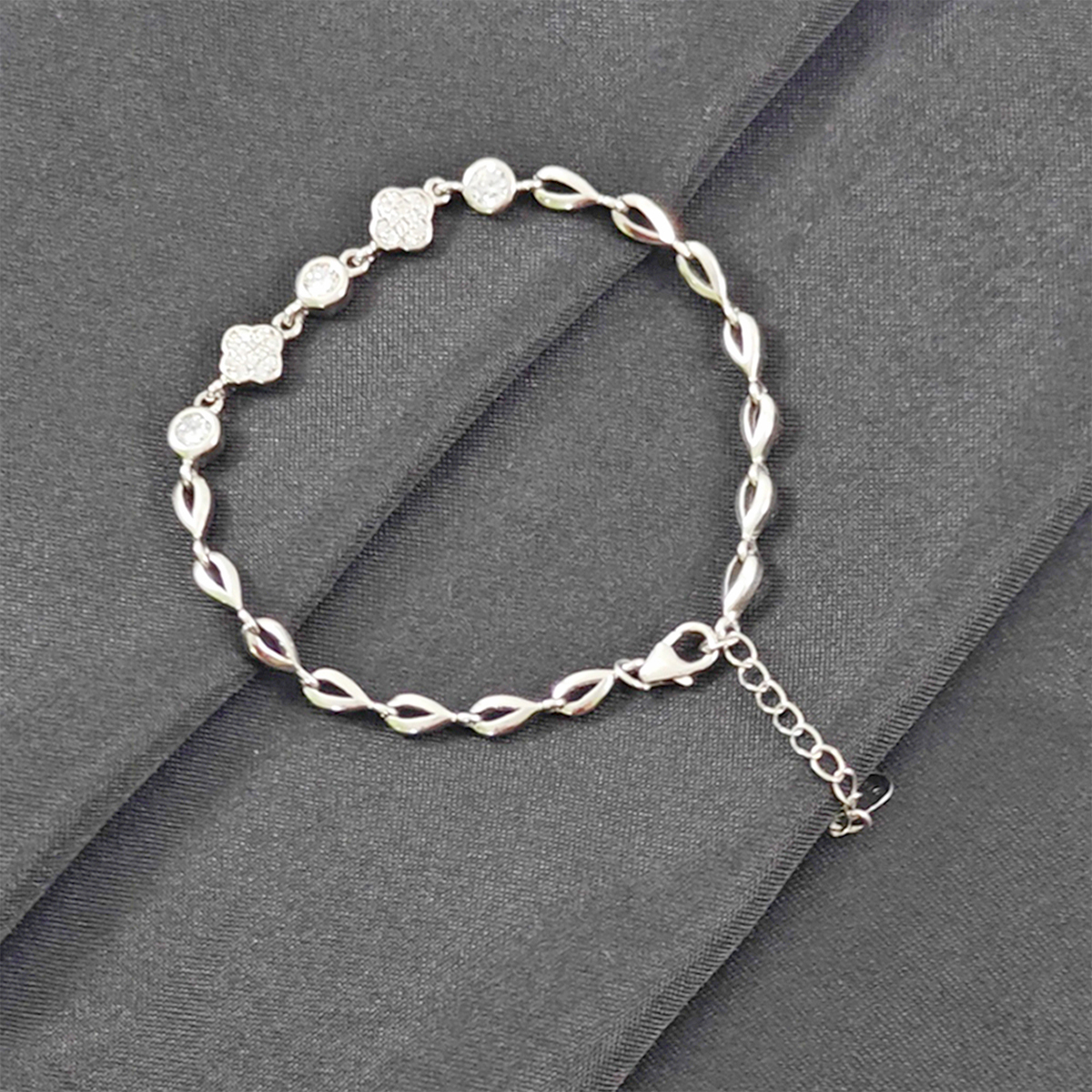 A silver-colored bracelet with a chain design, featuring detailed circular charms. The intricate craftsmanship and elegant design make it a standout piece of jewelry, perfect for adding a touch of sophistication to any outfit.