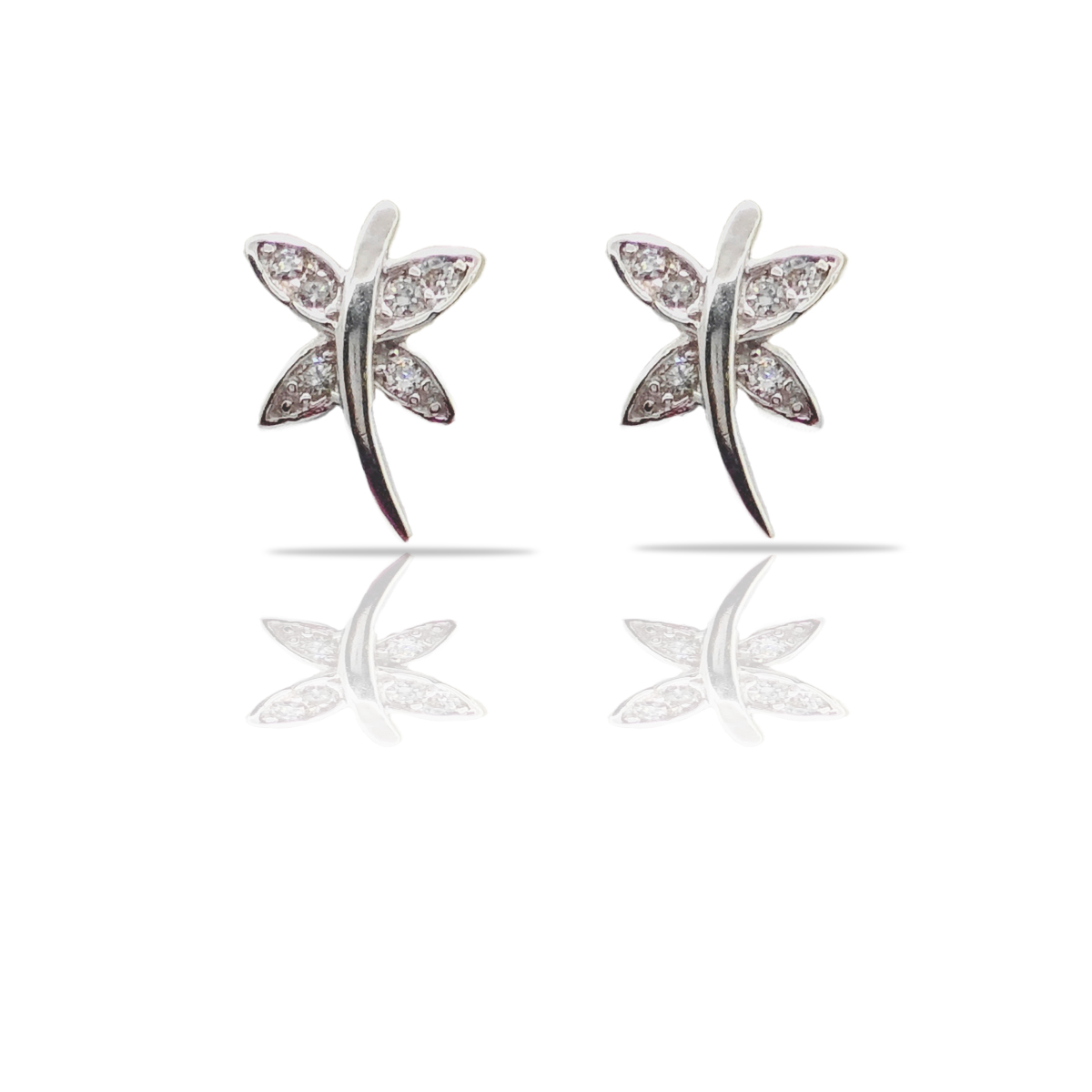 Pendant Set:- The centerpiece pendant set features a finely crafted dragonfly pendant, suspended on a sleek silver chain. The shimmering cubic zirconia stones enhance the pendant's allure, making it a striking accessory for any occasion.