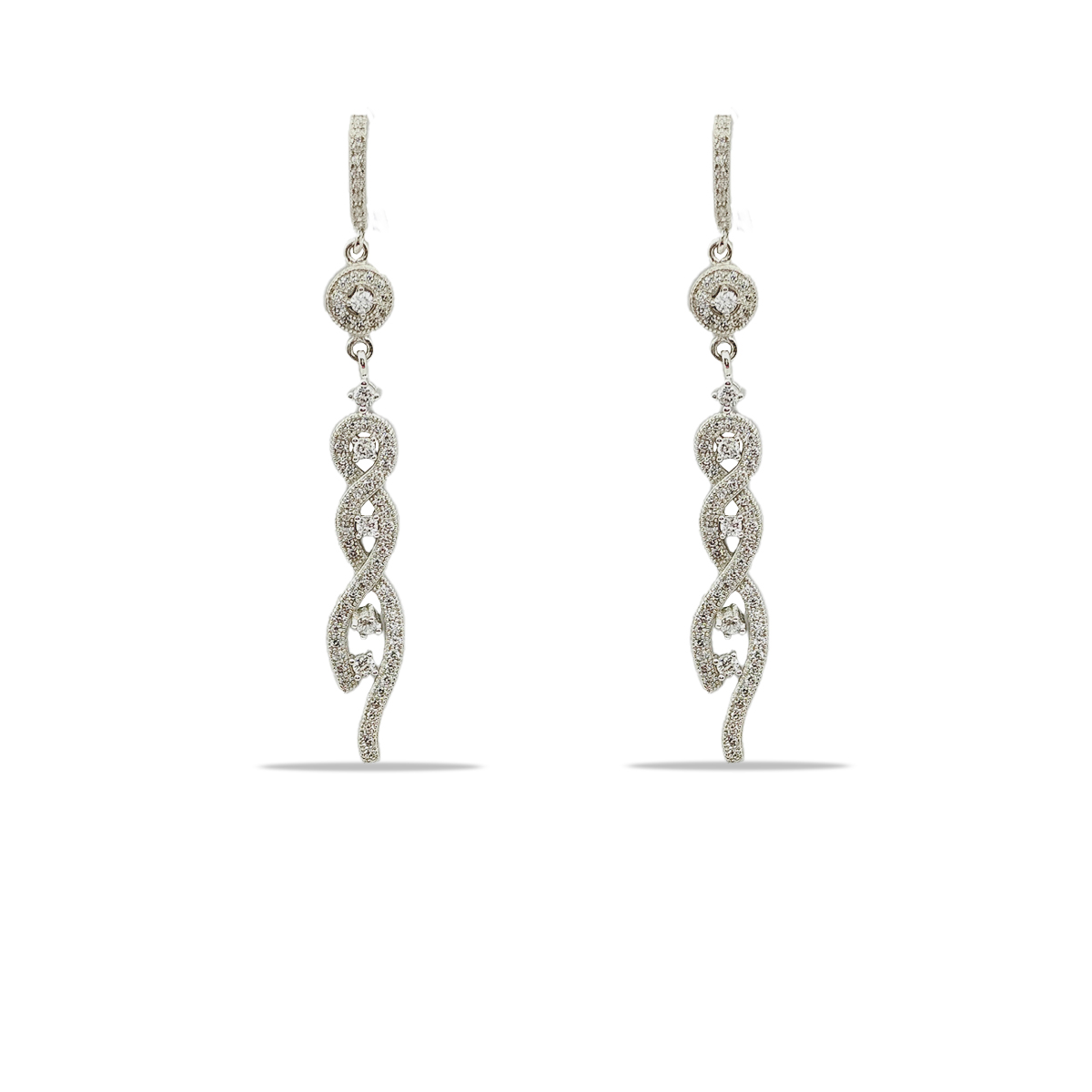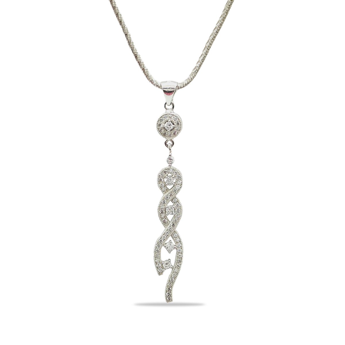 Earrings:- The matching earrings mirror the pendant's design with their elongated, twisted shape and shimmering stones. Designed for comfort and style, these earrings are perfect for enhancing your look with a touch of sophistication.