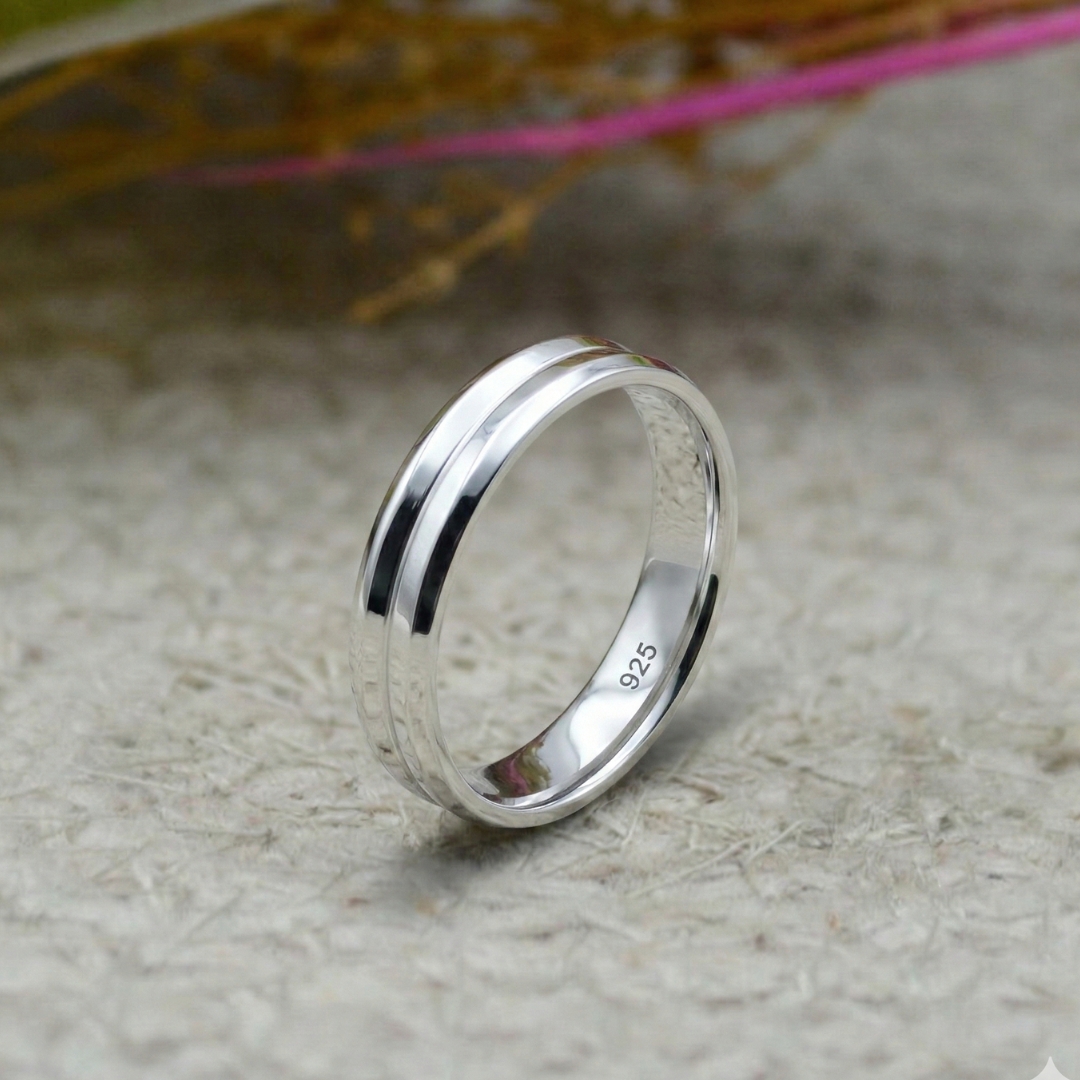 Crafted from premium 925 sterling silver, this Ladies Gents Common ring embodies sophistication with a sleek, polished finish. The subtle groove running along its circumference adds a touch of modern minimalism, making it the perfect accessory for men who appreciate understated style